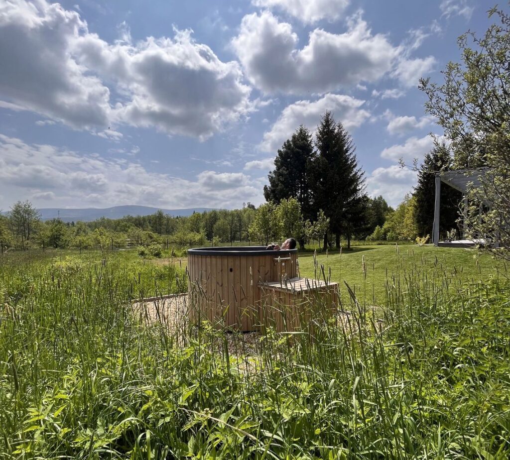 W Srebrnej Chacie dbamy o to, aby nie obciążać środowiska. Aranżując przestrzeń staraliśmy się maksymalnie wykorzystać zastane otoczenie, aby to właśnie natura grała tu pierwsze skrzypce. Dom został zbudowany wyłącznie z naturalnych materiałów, a część wyposażenia wykonał utalentowany lokalny stolarz. Gruntowa pompa ciepła dba o przyjemną temperaturę w domu. Woda, którą pozyskujemy z głębinowej studni nadaje się do spożywania bez chemicznego uzdatniania. Zużyta woda jest oczyszczana przez przydomową oczyszczalnię, aby w końcowym etapie nawodnić kwietną łąkę przy domu. Perlatory w bateriach stanowią kolejny ekologiczny element dbałości o zasoby wodne