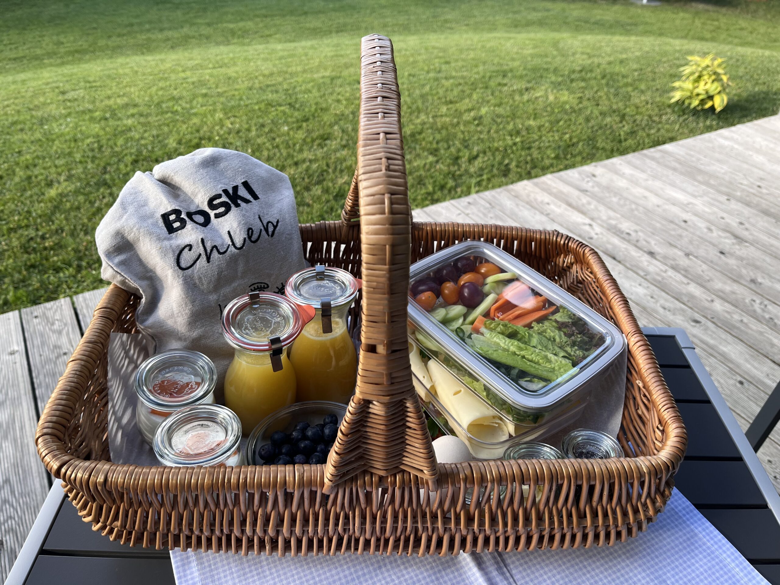 Spacerując po lesie, który mamy tuż obok – w sezonie wystarczy krótki spacer, aby wrócić z porcją grzybów na jajecznicę